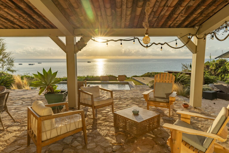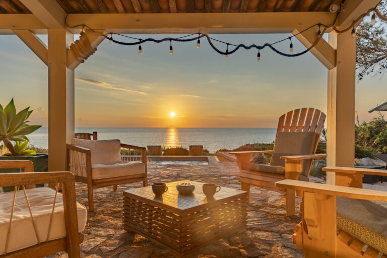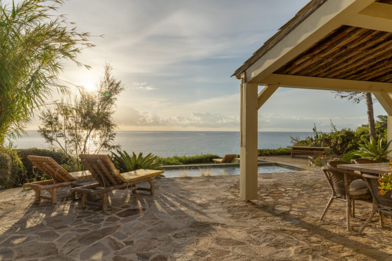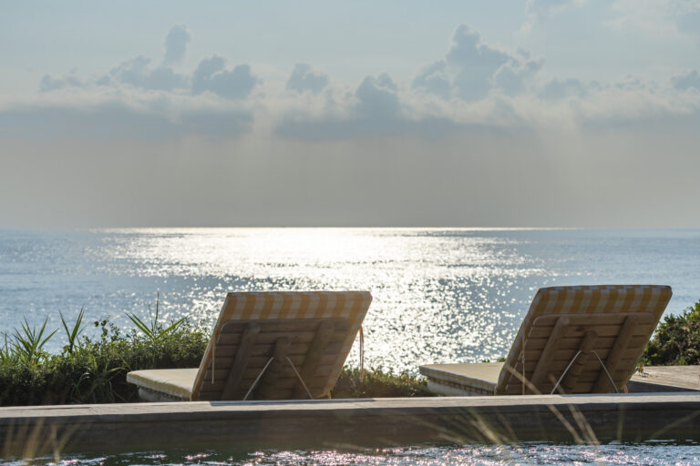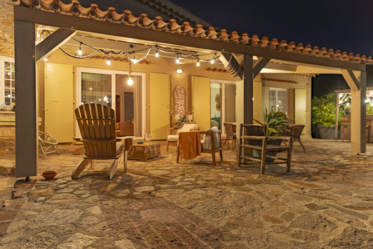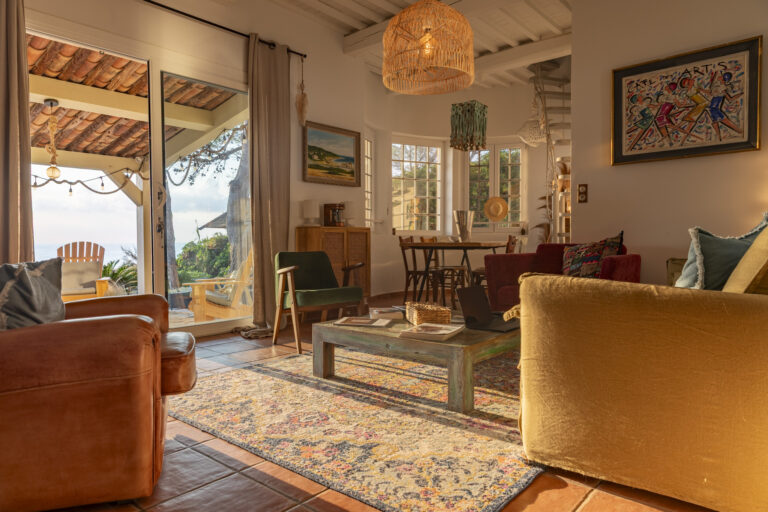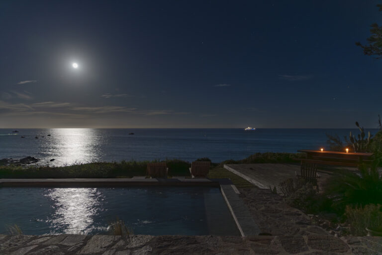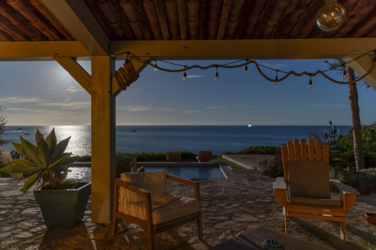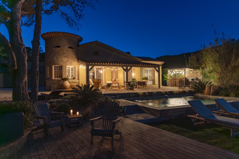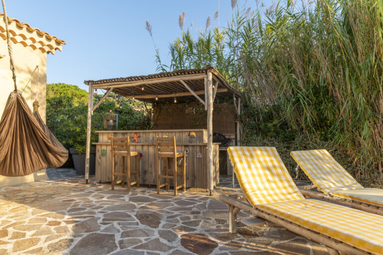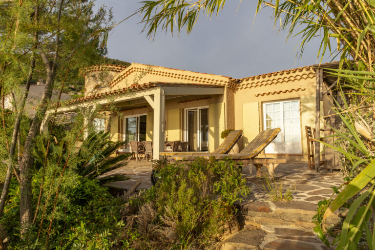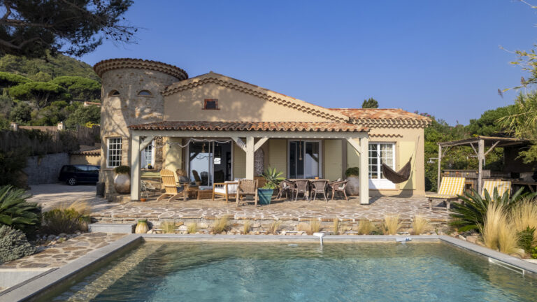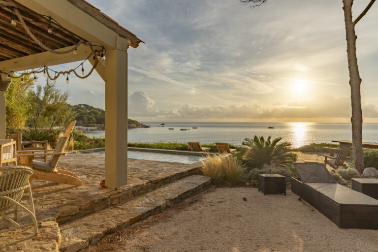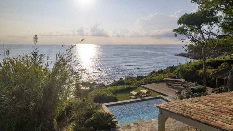 La villa est idéalement située à Ramatuelle, au-dessus de la plage de l’Escalet