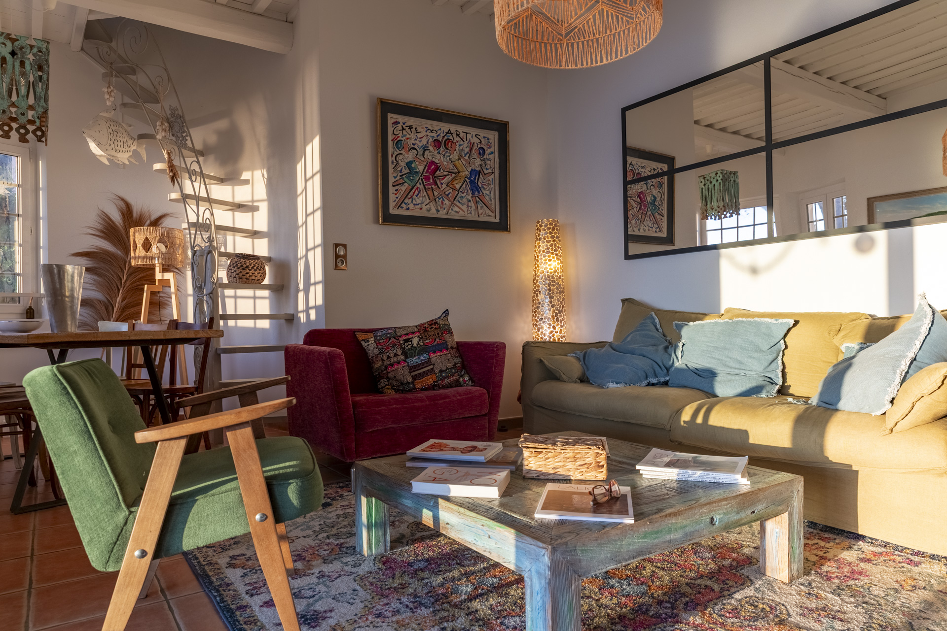 La maison se vit autant à l’extérieur qu’à l’intérieur. Elle bénéficie de nombreuses terrasses d’exposition différentes et permet ainsi de profiter du soleil tout au long de la journée.